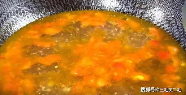 3、接着倒入番茄炒融,加一大碗清水,煮沸成番茄汤。