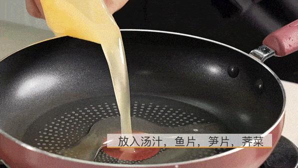 ?放入汤汁等食材配料,搅拌均匀,大火烧开,中火烧制2分钟左右。