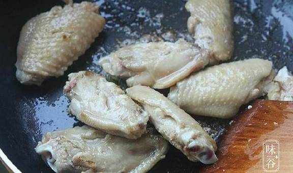2、锅里不放油,或者只放一点点油,小火将鸡翅两面煎黄;
