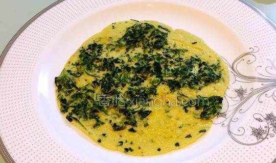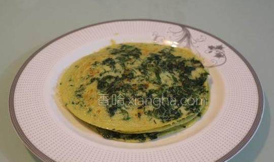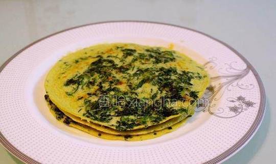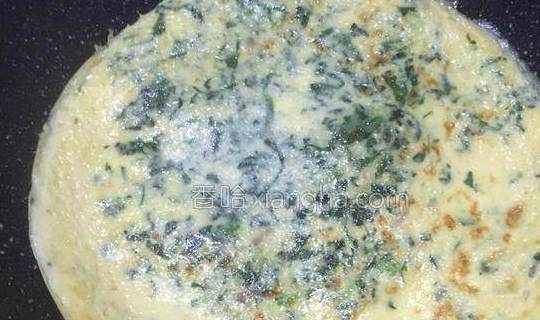 烹饪步骤:1.看我摊好的第一张荠菜蛋饼。