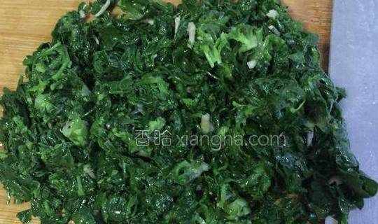 3.捞出浸入凉水,过凉后沥干水分。将烫好、过凉的荠菜切成碎。