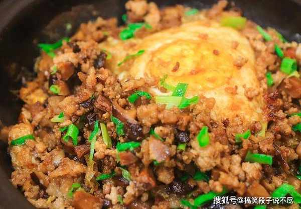 6.把刚才炒好的肉沫、香菇盛放在砂锅里面,盖上锅盖开小火再焖煮2分钟就可以了,出锅前撒上葱花,这道鲜香美味的肉末荷包蛋就做好了。