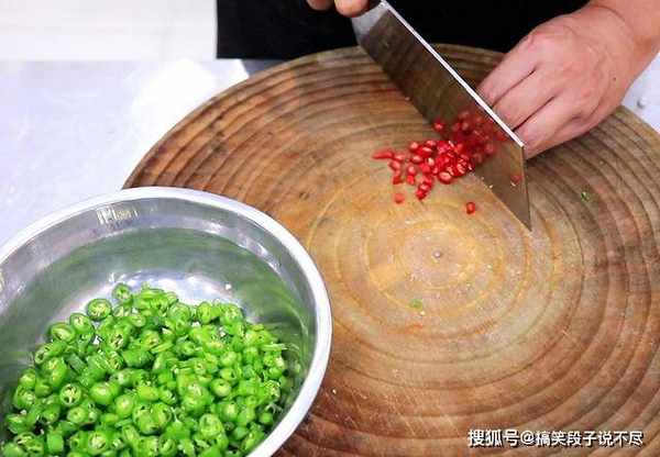 1.准备线椒一把,先把线椒蒂去除,再切成圈;小米椒几个,同样切成圈,主要用来配色;大葱一段,切成葱花。