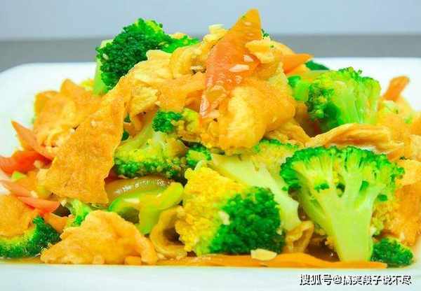 6.把控过水的西兰花和鸡蛋饼一起放入盆中,倒入调好的料汁,翻拌均匀后即可,这道爽口开胃的西兰花拌鸡蛋皮就做好了。