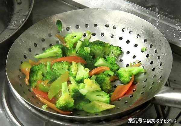 5.锅内烧水,水烧开以后加入食盐1克,植物油5克,白醋5克,把西兰花倒入锅中,焯水30秒左右,西兰花断生、变软以后倒出来,用凉水冲洗几下,控水备用,凉水冲洗食材口感更清脆。
