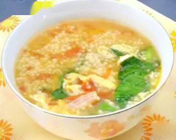 原料:小米、肉馅、香菜、西红柿、虾