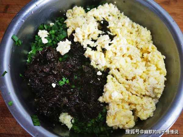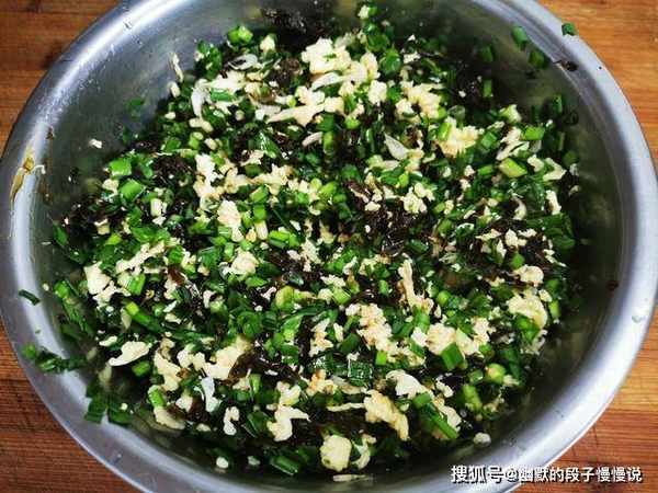 馅料:韭菜,紫菜,鸡蛋,虾皮,食盐,生抽,耗油,香油