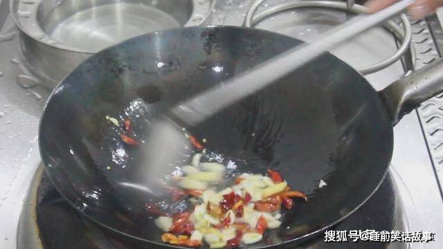 锅内烧油,倒入葱姜蒜红干椒爆香。