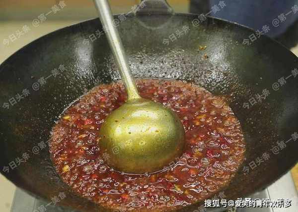 把酱料放进去 ,小火慢熬出香味和红油,然后再放干辣椒段 ,闻到香辣味以后倒进去半罐啤酒,转小火慢熬三五分钟,调味加