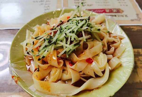 最后上来的菜肴是刘运杰点的两份黄面,看起来跟凉皮很像,里面也放了不少的辣椒汁进去,口感香辣咸香,是湖南人爱吃的口味。