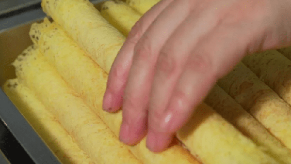 据说蛋卷是舶来品,最早由瑞士人发明,所以也叫“瑞士卷”。瑞士的蛋卷是用面粉、鸡蛋液、白糖拌成面糊,加牛油烤成片状,抹上黄油再卷成筒而成。不过广东人吃蛋卷的历史也十分悠久了,可以算得上是一款传统广东美食。