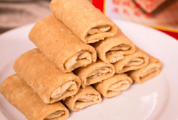 东莞人人都爱吃蛋卷,蛋卷是过年必不可少年货,过去许多老人家都会自己做蛋卷。后来,随着食品工业的不断发展,工业生产的蛋卷质量更为稳定,用铁盒包装的蛋卷也易于保存。蛋卷哪里都有得卖,但是厚街的蛋卷特别的香。