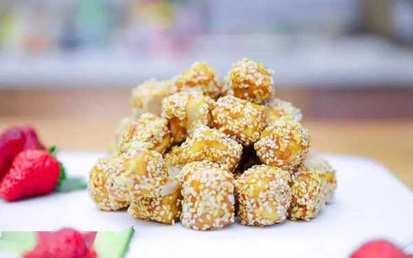 6、随着不停的搅拌,糖汁的颜色会逐渐加深,变浓稠,先是香油色,继续加热会变成琥珀色。这个时候立即倒入山药段,颠锅翻炒,让糖汁均匀裹满山药,再撒上白芝麻,整个过程要不停的翻炒,不然山药容易粘在一起,芝麻裹满山药以后即可出锅装盘。