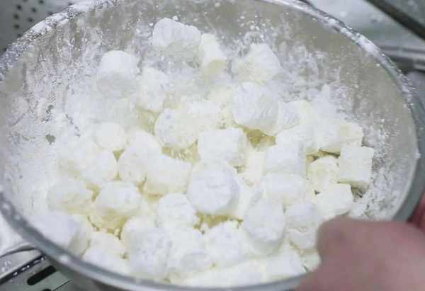 2、烧半锅开水,把山药放进去汆煮一下,开锅以后再煮1分钟左右,山药断生以后即可倒出,并用清水冲泡过凉。提前煮一下,能防止炸的时候出现夹生的现象。然后把山药倒入盆中。多撒一些淀粉裹匀,这样炸出来表皮更加的焦酥。