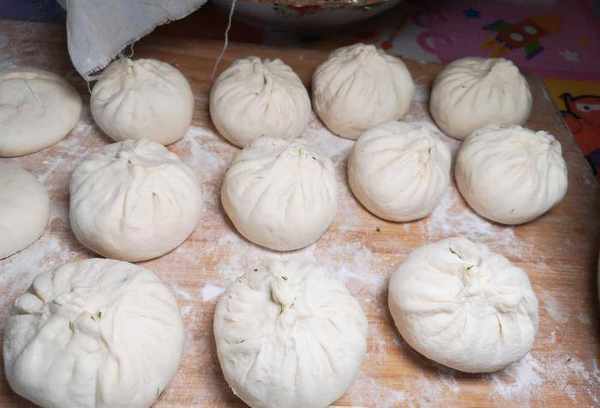 第五步:包好蛋胚后,盖上容器,二次醒发15分钟。锅里加水,把屉布弄湿,铺在笼屉上,把包子胚放进锅里,开大火蒸,蒸好后开始计时,蒸20分钟后关火,煮沸。3分钟,然后就出锅了。
