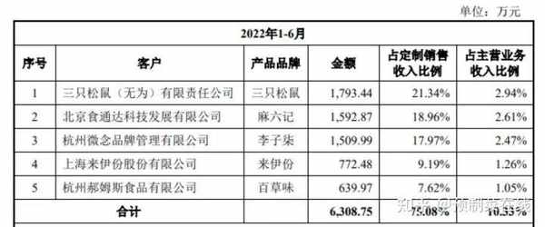 2022年上半年,阿宽食品的前五大定制销售客户分别为三只松鼠、麻六记、李子柒、来伊份和百草味。