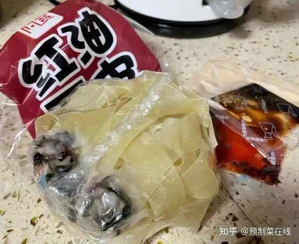 2月16日,有网友在社交平台发布消息称,“昨晚准备吃红油面皮的时候发现塑封膜里包着一坨黑色的东西,上面有毛还有一块发霉的地方,很像老鼠肉。”