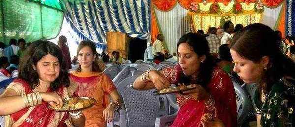 其实印度国宴均提供有刀叉等餐具,异国外宾如果不习惯用手,可以挑选叉或刀来用餐,不过印度人大部分还是喜欢用手抓。有一次印度国宴,英迪拉甘地夫人展开双手把食物抓起来就往嘴里送,这使得在席在外国宾客有点不知所措,可能考虑到入乡随俗的问题,见到主人用手抓,于是众宾客也只能放弃了刀叉,改而用手抓来吃。
