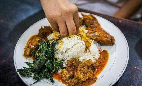 然而用手抓也会存在很多不便,像是汤水、酱汁之类的食物就挺麻烦。尤其是印度人特喜欢吃咖喱类食品,很多食物都加了浓郁的咖喱汁,一会是咖喱拌饭一会有是咖喱酱面等,此时的印度人依旧喜欢用手扒抓着进食,因此场面看起来十分不雅,而且会弄得满嘴满手都是咖哩,可谓是吃相令人不敢恭拥。