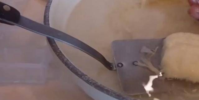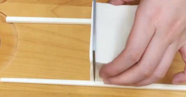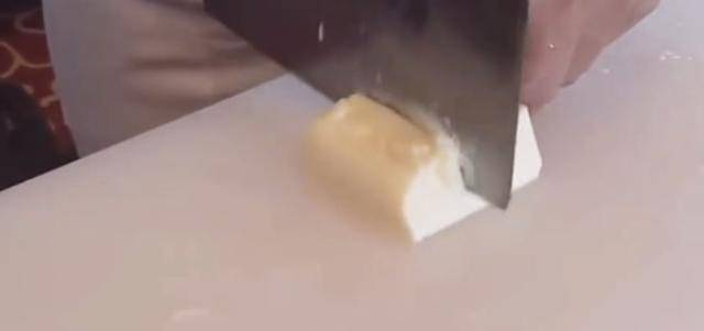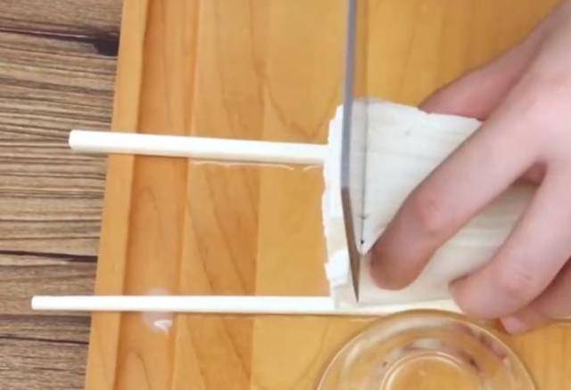 中国厨师也拿出了一块豆腐,不过用的刀是菜刀。要知道菜刀很粗很重,切起来很麻烦。一切准备就绪后,我迅速剪开,可以看到每一个都很细,连针孔都能穿过,细得可以用针扎。