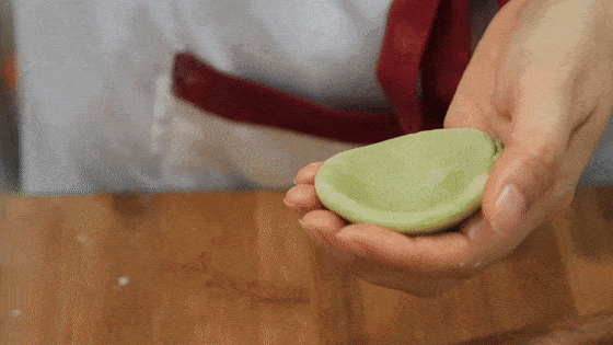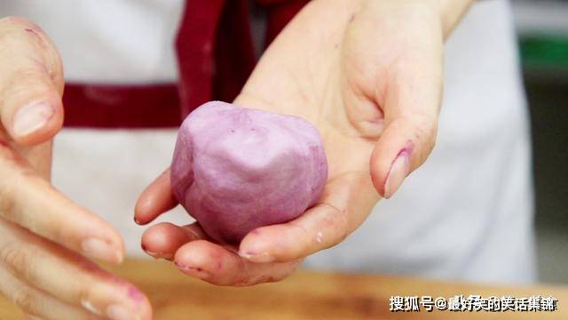 配料:黄油、猪油、菠菜粉、紫薯粉、红曲米粉、红豆沙
