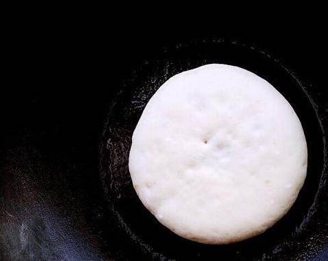 开火,锅内倒入少许油,油湿热,放入饼,小伙慢慢烙