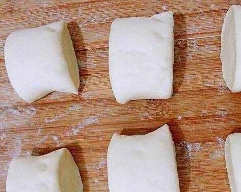 将面团移到面板上揉搓排气,揉成长条,切成几个差不多大小的面块