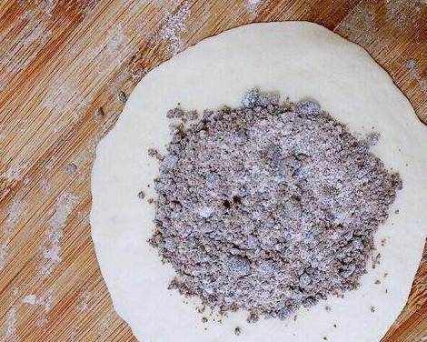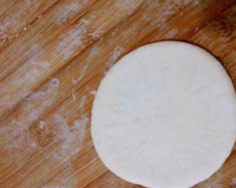 取一个刚切好的面块,将其擀成中间厚四周薄的圆面片,取适量红糖放进面片中间