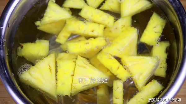 接下来再将切好的菠萝,直接倒在盐水中浸泡一下。淡盐水可以抑制菠萝酶对口腔黏膜和嘴唇的刺激。经过淡盐水的浸泡之后,这样的菠萝吃起来不仅不会使我们的嘴巴不舒服,而且还会让菠萝变得更加香甜好吃。如果今天的文章对您有帮助,那就点一个关注,点一个赞,感谢您的支持。