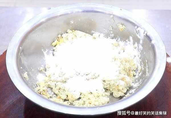 3.再分次加入适量的面粉,搅拌至馅料成团即可,面粉主要用来增加黏性,不需要太多,全程不需要加水,蛋液和冬瓜出的水已经足够了。