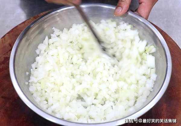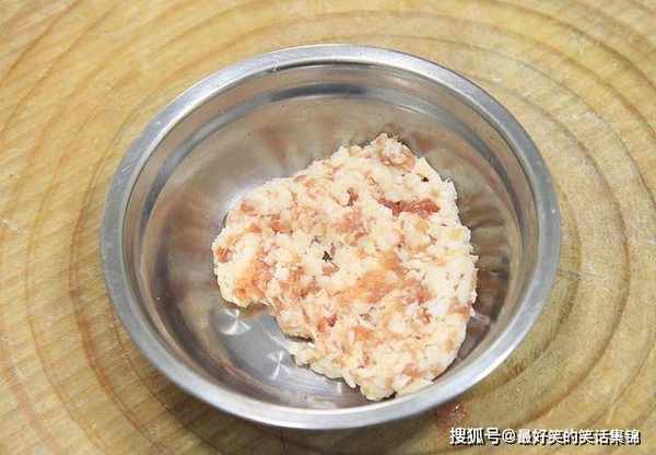 3.准备五花肉一小块,先切成薄片再剁成肉末,不要剁得太碎,有点颗粒感更有嚼劲。
