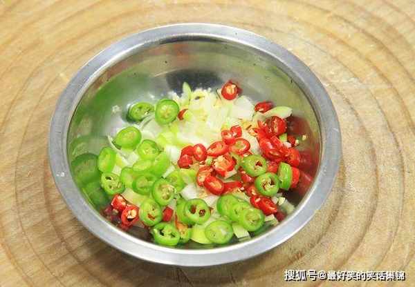 2.大蒜剁成蒜末,生姜切成姜末,大葱破开切成葱花,小米椒三粒切成辣椒圈,再切点线椒圈,为菜品增色。