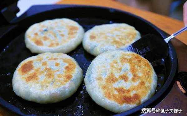 来回翻过两次,饼鼓起来里面的馅就熟了。饼皮酥香,趁热吃口感最好。