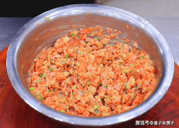 再多次少量的加入面粉,调成粘稠的馅料