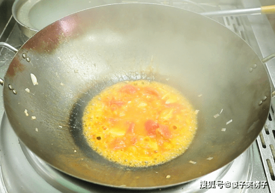 4.锅里面留底油,把葱姜蒜放进去爆香,倒入番茄,再加一点番茄酱补色,把番茄炒化,熬出汁,