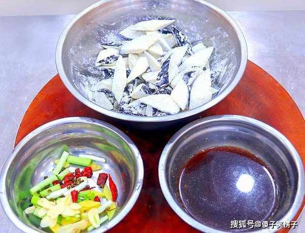 。准备一下配菜,青椒一片,红椒一片,切成宽条, 大蒜几粒,剁成蒜末,大葱白一段, 切成葱花,放入盆中备用。