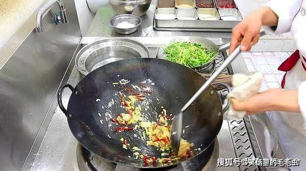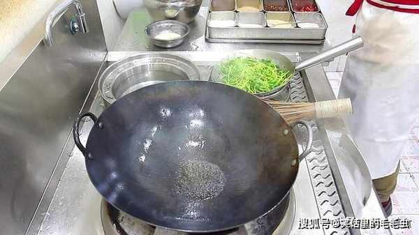 4.锅内烧油,充分滑锅后,倒出热油,加入凉油,热锅凉油,能使普通的铁锅起到不粘锅的作用。