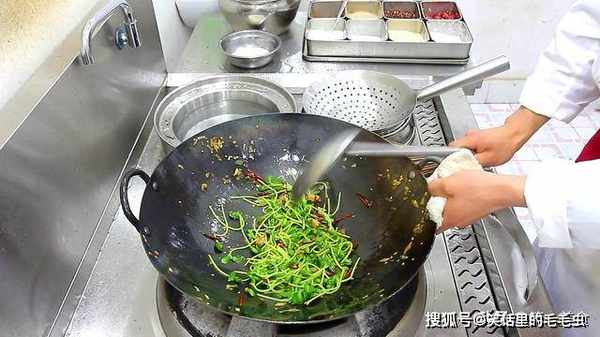 1.炒豆苗时,为了后面的快炒,要先把豆苗焯水断生。