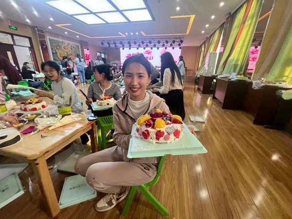 伴随着奶油的清香,一场别开生面的手工DIY蛋糕体验活动开始了。老师们体验了蛋糕的制作过程,用事先准备好的蛋糕胚放在托盘上,大显身手。在这场甜蜜的活动中,大家都享受着蛋糕制作带来的愉悦。