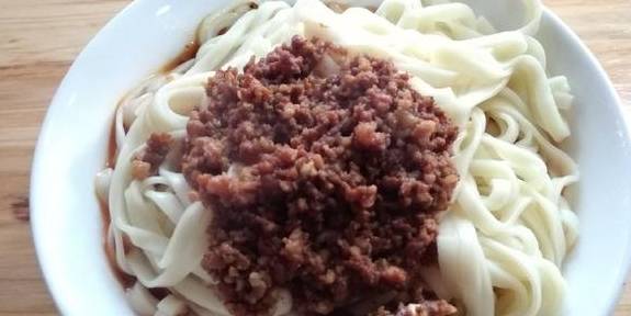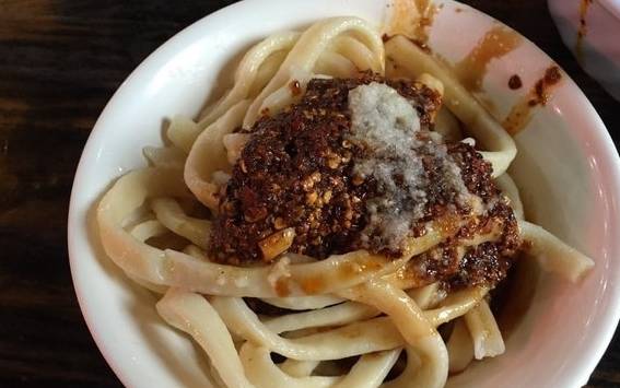 他家的杂酱面是我特别喜欢的小吃,沿用传统的烹饪之法,底料由葱,酱油,麻酱,花椒,海椒……扎起,面上盖精心煨制的杂酱臊子,麻辣鲜香,回味香甜,隔几天就要来一次,止不住。