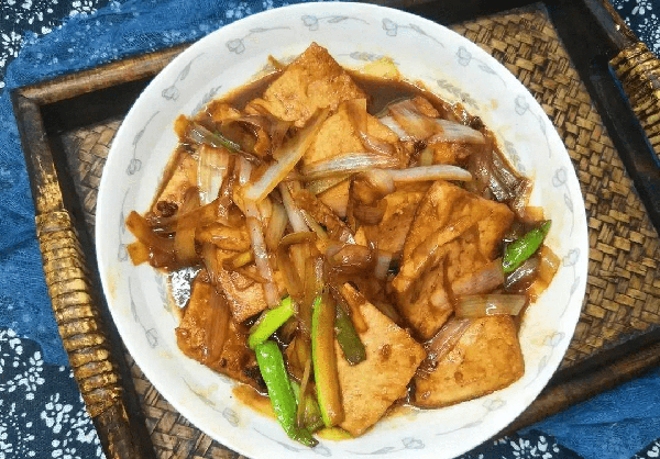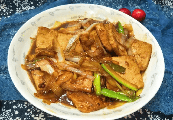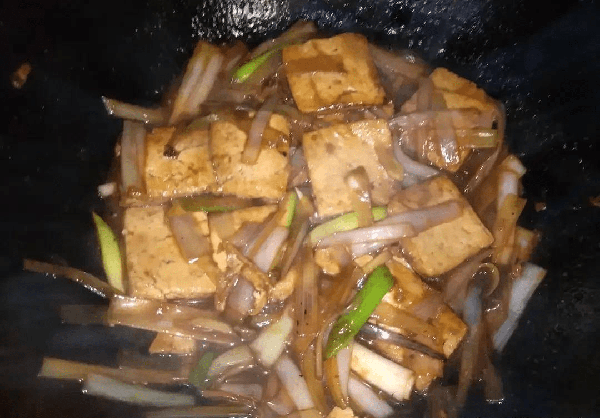 豆腐,大葱,生姜,植物油,盐,鸡精,生抽,老抽,甜面酱,白糖,淀粉。
