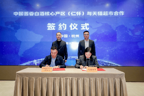2月28日,仁怀市人民政府代表仁怀酱酒产业带与天猫超市在杭州正式签署战略合作。