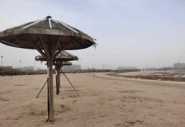 从福园巷子出发走滨河西路,15分钟就到咸阳湖二期沙滩。如今,这里被称为“马尔代夫咸阳分夫”。