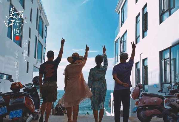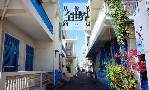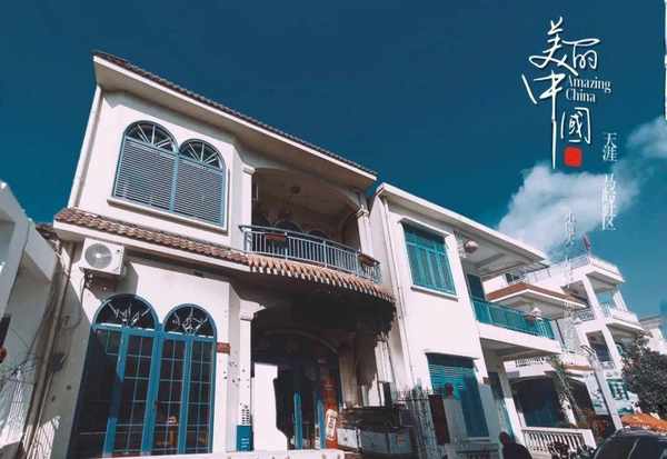 从“黄龙街”进入小镇,道路两侧的民居都是蓝色门窗和白色墙面,治愈的配色使得建筑样式显得格外的整齐划一,仿佛进入了一个海洋世界里的童话小镇。