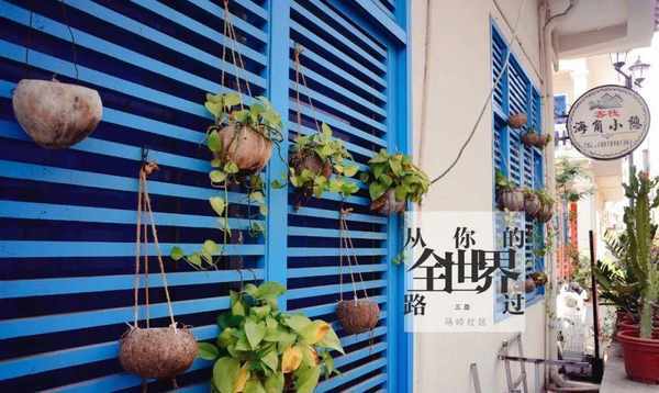 进入街道抬头向上望去,可以看见家家户户的阳台上都垂挂着粉紫色花篮,治愈的蓝白配色中又增添了一抹浪漫的粉色系美感。如果逛累了,可以来到文艺青年必打卡的“天涯一卷书”书店看一看,这里是拥有“诗与远方”的文学创作基地,一楼是书吧,二楼是咖啡吧。你还可以在这给远方的好友写一封明信片寄去,在不远处,还有一间“回响”书屋,据说前身是天涯书院,这是一间充满海南味道的老房子,这里有书、民谣、咖啡,还有电影沙龙。“念念不忘,必有回响”。