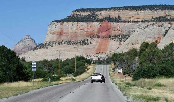 在大黄石地区游玩一周后,大清早开车出发,我们到了晚上才赶到犹他州的锡安国家公园附近的旅馆。最后一段路程,本来就泛红的山石在晚霞中显得绚丽无比。