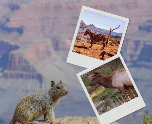 还有松鼠。大峡谷的松鼠尾巴是蓝的,非常漂亮,据说这就是大峡谷独一无二的流苏耳松鼠。