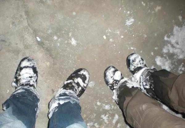 裤腿鞋子全是冰球