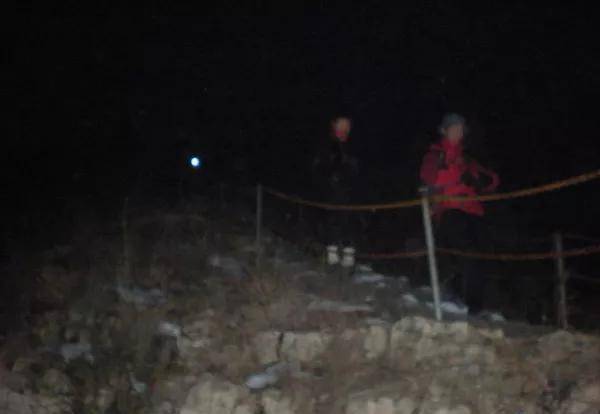 一个山头,又一个山头,都被踩在了驴蹄下,终于能看到山下的灯光了,有盼头了,回头看看大家,居然在黑暗中只看到一盏微弱的灯光,除此之外,什么也看不到。于是,停下,拿出相机,打开闪光灯,当感觉到后面的驴友靠近时,就按下了快门,靠!在白花花的屏幕上的人都变成了鬼。