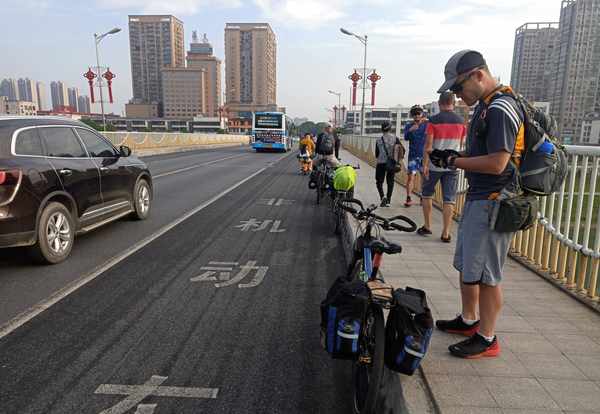 早上先骑出来找吃饭的地方,好晒啊,不过云好漂亮,在快出城的地方找了面馆,吃了早饭继续往前。进入常德,一路上的路况都蛮好的,平路居多,一起骑行过海南东线的常德姐姐还发信息来要我们一起午饭,可是行程不合适,只能下次再聚了。经过一个叫君逸山水的楼,和我家楼下的君逸山水大酒店一样的名字[捂脸]